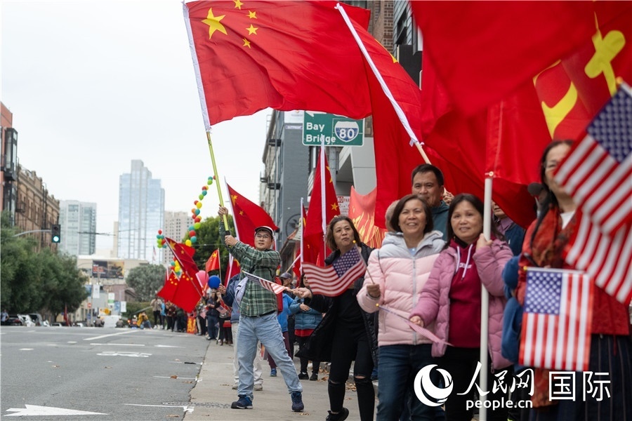 習(xí)近平乘坐的車隊(duì)離開(kāi)機(jī)場(chǎng)前往下榻飯店途中,許多華僑華人和中國(guó)留學(xué)生代表等候在沿途街道,揮舞中美兩國(guó)國(guó)旗,熱烈歡迎習(xí)近平主席到訪。