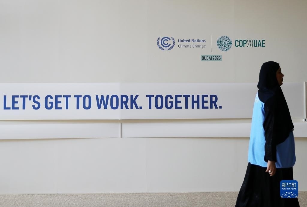 12月12日,在阿聯(lián)酋迪拜,參會(huì)人員在聯(lián)合國(guó)氣候變化迪拜大會(huì)會(huì)場(chǎng)內(nèi)工作。新華社記者 王東震 攝