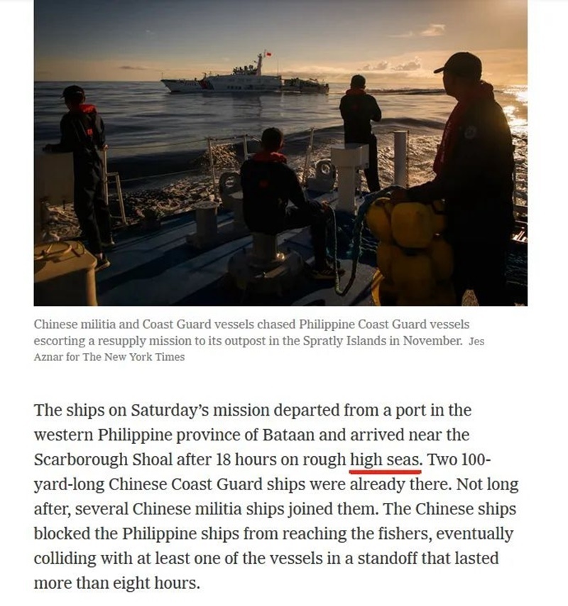 事件發(fā)生后,《紐約時報》也按計劃“交差”,刊發(fā)文章“力挺”菲方,試圖把中方塑造成“霸凌者”,在國際輿論上為菲方博取更多同情,向中方施加更大壓力。