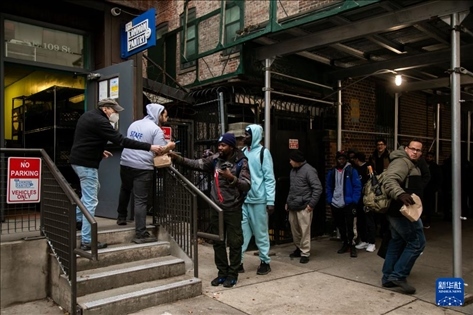 12月24日,在美國(guó)紐約,民眾在“紐約公共食品儲(chǔ)藏室”排隊(duì)領(lǐng)取免費(fèi)食品。新華社發(fā)(郭克攝)