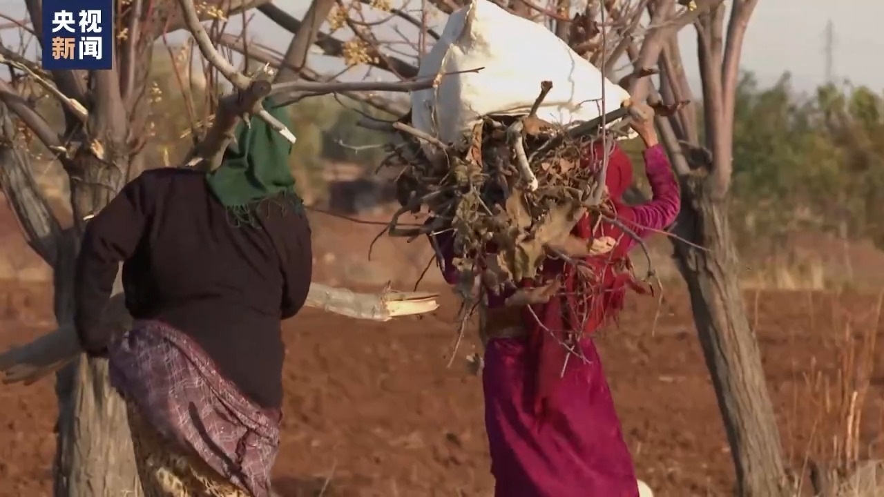 在村口,我們看到扛著柴火的農(nóng)村婦女,她們撿樹枝給家里取暖。村外,我們發(fā)現(xiàn)一些地區(qū)的樹木都快被砍光了。戰(zhàn)爭和制裁帶來的人道主義危機已經(jīng)讓鄉(xiāng)村空殼化。而戰(zhàn)前,這還是一片被譽為“中東糧倉”的小麥出口地。
