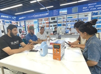 最近,埃馬紐埃爾又開始關(guān)注新能源產(chǎn)品?!翱溌∫恍┑胤酱嬖陔娏Χ倘薄⒐╇姴环€(wěn)的問題,很多當(dāng)?shù)厝讼M夷茉谥袊业胶线m的產(chǎn)品?!睘榇耍涯繕?biāo)瞄準(zhǔn)了義烏國際商貿(mào)城的新能源產(chǎn)品市場,尋找到一些適合喀麥隆的光伏設(shè)備?!爸袊男履茉串a(chǎn)品性能可靠、性價比高,產(chǎn)品品類覆蓋領(lǐng)域廣泛?!卑qR紐埃爾表示,大到醫(yī)療機構(gòu),小到禽畜養(yǎng)殖場,中國光伏設(shè)備供應(yīng)的電力有助于滿足當(dāng)?shù)孛癖娚a(chǎn)生活的用電需求。
