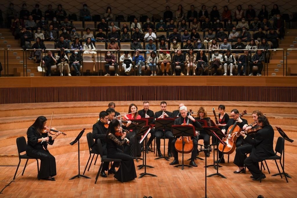 ?這是2023年11月16日拍攝的音樂會(huì)現(xiàn)場(chǎng)。當(dāng)日,“費(fèi)城之約”——費(fèi)城交響樂團(tuán)與蘇州交響樂團(tuán)室內(nèi)樂音樂會(huì)在江蘇蘇州舉行。新華社記者 李博 攝