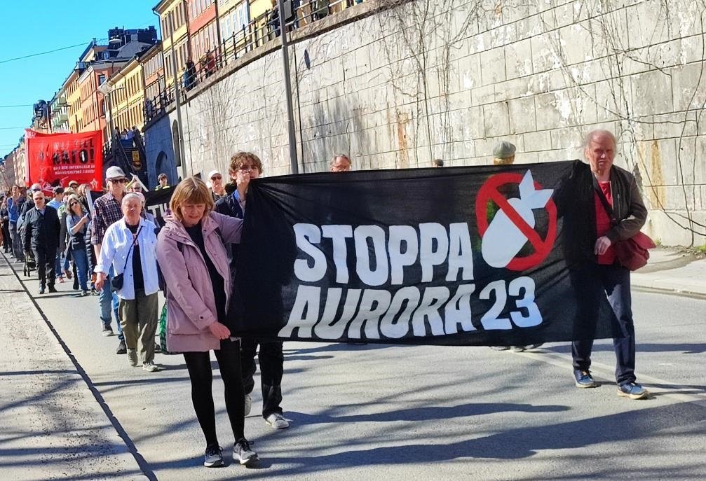 2023年4月22日,人們在瑞典斯德哥爾摩參加抗議活動。瑞典全國近20個(gè)城市當(dāng)日舉行活動,抗議在瑞典舉行大規(guī)模國際軍事演習(xí)、反對瑞典加入北約。新華社發(fā)(帕特里克·??怂固靥m德攝)