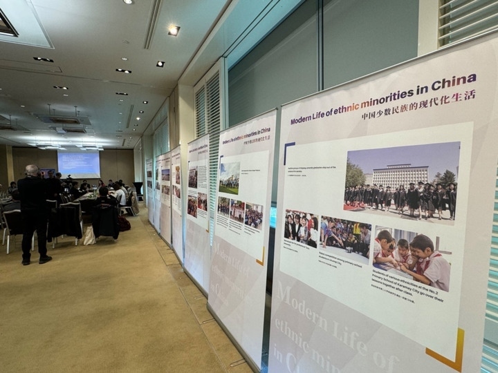 ?3月14日,由中國人權(quán)研究會主辦的“現(xiàn)代化發(fā)展中的少數(shù)民族受教育權(quán)——以中國西藏和新疆為例”主題邊會在瑞士日內(nèi)瓦舉行。圖為會議現(xiàn)場舉辦的“中國少數(shù)民族的現(xiàn)代化生活”圖片展。新華社記者石松攝
