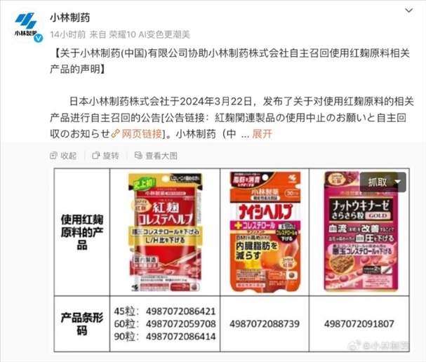 小林制藥產(chǎn)紅曲致命?