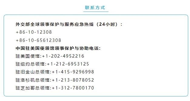 外交部及駐美使領(lǐng)館已就此向美方提出嚴(yán)正交涉。同時(shí),提醒擬赴美人員意識到入境美國時(shí)可能遇到各種意外情況。如需尋求幫助,請及時(shí)聯(lián)系中國駐美使領(lǐng)館。