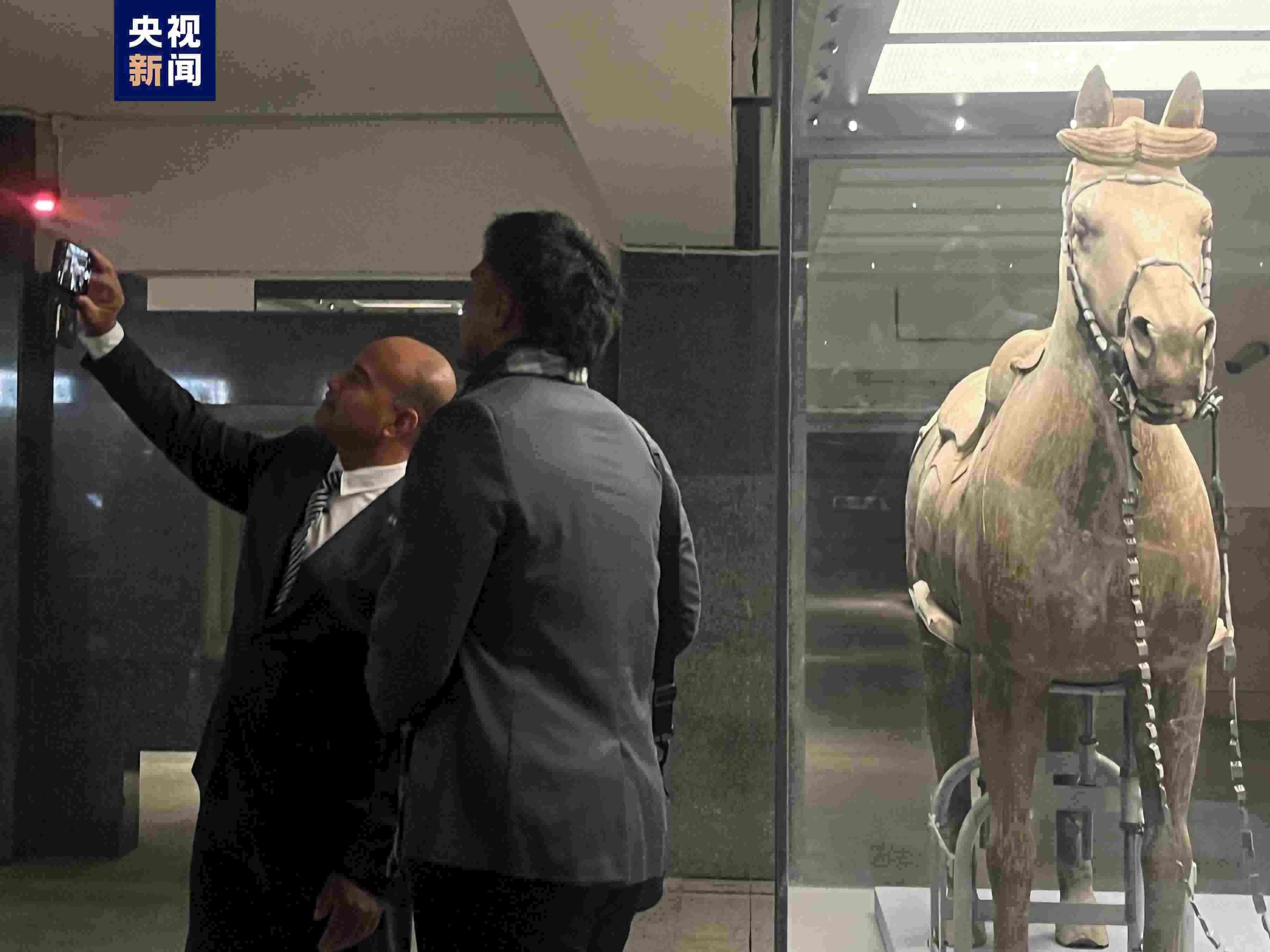 瑙魯總統(tǒng)阿迪昂今天(27日)在陜西西安繼續(xù)訪華之旅。在秦始皇兵馬俑博物館,阿迪昂總統(tǒng)先后參觀了一號坑、三號坑和二號坑,了解秦兵馬俑的歷史。參訪過程中,阿迪昂總統(tǒng)不時拿出手機(jī)自拍,記錄這段與古老中國“相遇”的難忘之旅。在接受總臺央視記者采訪時,阿迪昂總統(tǒng)表示,自己一直非常期待能夠來到這里,希望通過此訪增進(jìn)對中國的了解,也相信瑙中兩國加強(qiáng)合作,將助力瑙魯實現(xiàn)進(jìn)一步發(fā)展與繁榮。