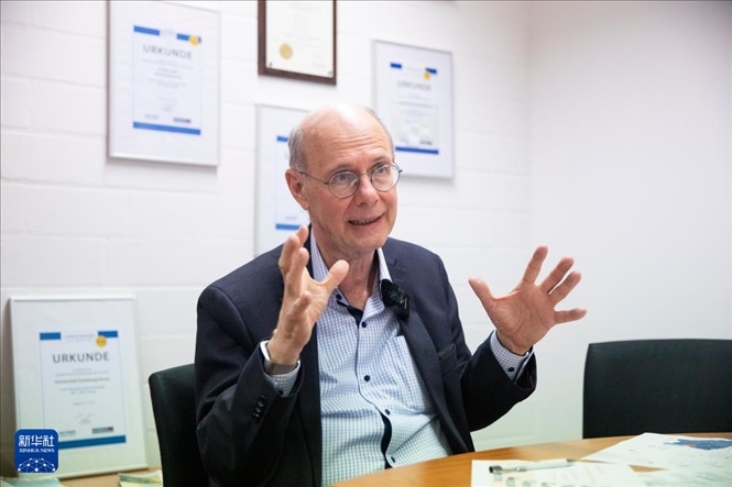 ?3月27日,德國杜伊斯堡-埃森大學(xué)交通與物流系主任貝恩德·諾合在杜伊斯堡接受新華社專訪。新華社記者 張帆 攝