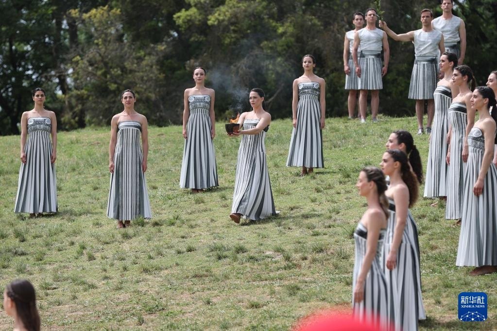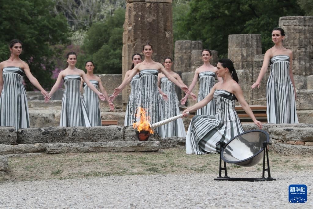 當(dāng)日,2024年巴黎奧運(yùn)會(huì)圣火火種采集儀式在希臘伯羅奔尼撒半島的古奧林匹亞遺址舉行。