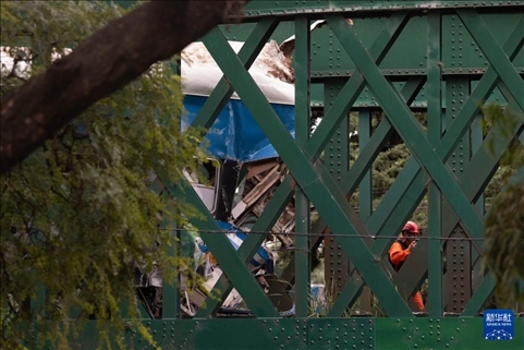 5月10日,救援人員在阿根廷首都布宜諾斯艾利斯火車相撞事故現(xiàn)場(chǎng)工作(無(wú)人機(jī)照片)。新華社發(fā)(馬丁·薩巴拉攝)