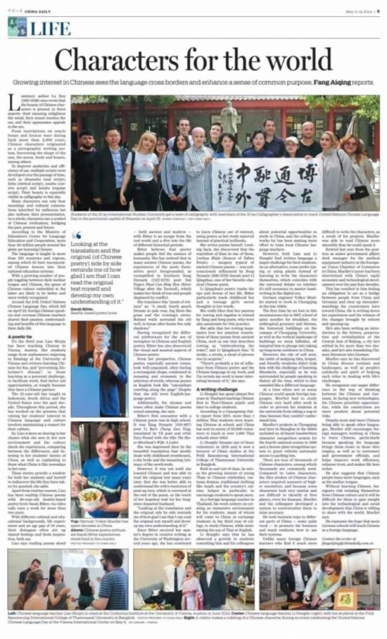 中外語(yǔ)言交流合作中心與中國(guó)日?qǐng)?bào)網(wǎng)聯(lián)合發(fā)起的“國(guó)際中文日”系列線上活動(dòng)融合線下打卡體驗(yàn)、產(chǎn)出豐富多彩的中文日周邊文創(chuàng)和主題報(bào)道,以創(chuàng)意設(shè)計(jì)全方位、立體化地展現(xiàn)了“中文之美”,通過(guò)展示不同國(guó)家中文教育者和學(xué)習(xí)者的中文故事,也展現(xiàn)了文明互鑒、開(kāi)放合作和文化交流的重要性。