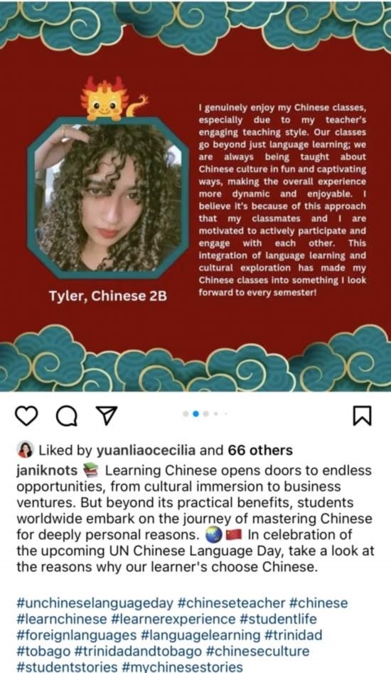 另外,在互聯(lián)網(wǎng)的浸潤(rùn)下成長(zhǎng)起來(lái)的海外“Z世代”也對(duì)中文和中國(guó)文化熱情洋溢。阿富汗的中文學(xué)習(xí)者Sediqi Khawaja Abdul Nasir認(rèn)為,“中文的學(xué)習(xí)不僅僅是掌握詞匯和語(yǔ)法,更是理解一個(gè)國(guó)家和一個(gè)民族的心靈。”特立尼達(dá)和多巴哥的Janine Lutchman從中文學(xué)習(xí)者成長(zhǎng)為本土教師,分享著她感染學(xué)生學(xué)習(xí)中文的點(diǎn)滴故事。此外,緬甸籍學(xué)生黃俊杰Thet Paing Phyo、土耳其籍中文學(xué)習(xí)者王愛(ài)英Ayperi ztürk和加納籍中文學(xué)習(xí)者王富健Richmond Ayawuli、格林納達(dá)的學(xué)生們等世界各地的青年,都在活動(dòng)中為大家?guī)?lái)千千萬(wàn)萬(wàn)動(dòng)人的“中文故事”。