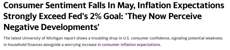 美國密歇根大學日前公布的數(shù)據(jù)顯示,由于通脹預期惡化,一項關(guān)鍵美國消費者信心指數(shù),跌至2023年11月以來的最低水平。