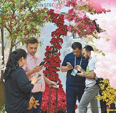 第135屆廣交會二期園林展區(qū)吸引許多外國采購商。陳楚紅攝