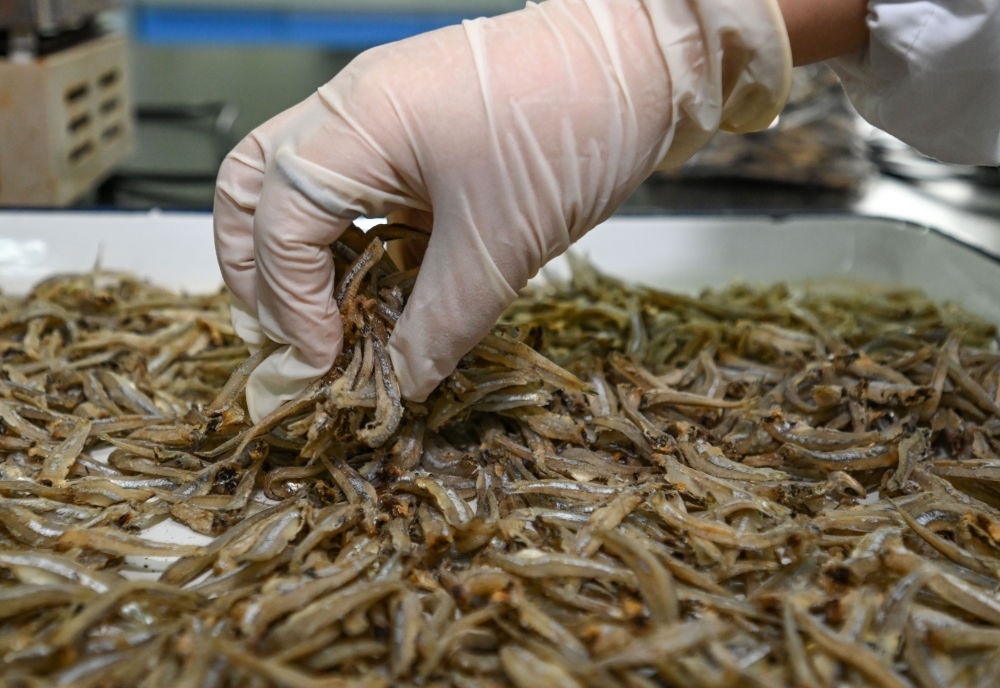2023年6月28日,在湖南省岳陽市平江高新技術(shù)產(chǎn)業(yè)園,勁仔食品平江生產(chǎn)基地的化驗(yàn)員在實(shí)驗(yàn)室對進(jìn)口鳀魚進(jìn)行水分檢測。2023年6月,中國首次進(jìn)口的肯尼亞野生鳀魚產(chǎn)品在第三屆中非經(jīng)貿(mào)博覽會上亮相。近年來非洲對華農(nóng)產(chǎn)品出口增長迅速。