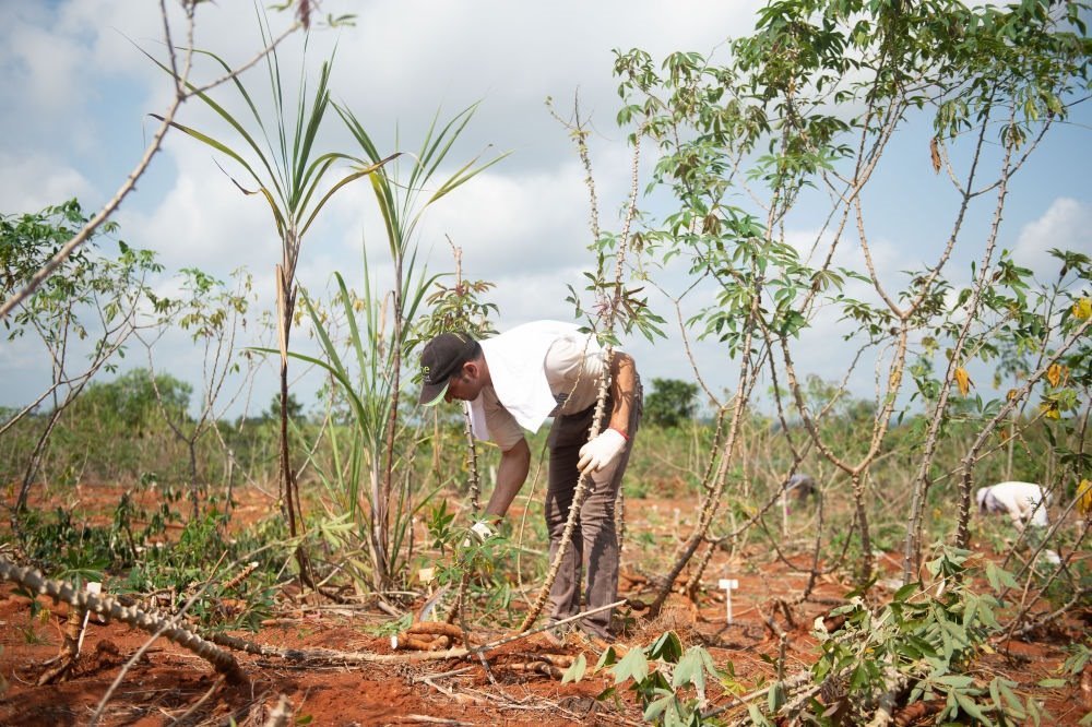 2020年3月24日,在位于海南省的中國熱帶農(nóng)業(yè)科學(xué)院的一處基地,來自埃及的副教授哈馬達(dá)·穆罕默德·哈?!ぐ⒉范爬瓍⒓又袊鵁峥圃簾釒锛夹g(shù)研究所木薯育種團(tuán)隊開展的木薯選育新技術(shù)培訓(xùn)。