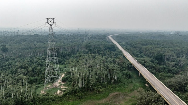 這張2024年9月13日拍攝的照片顯示,在巴西朗多尼亞州,EDP輸變電項目線路穿越熱帶雨林(無人機(jī)照片)。巴西EDP輸變電項目是位于巴西北部的阿克里州和朗多尼亞州的綠地輸變電工程,山東電建一公司承擔(dān)了該項目的EPC總承包任務(wù)。項目全面完成后,將極大提升當(dāng)?shù)仉娋W(wǎng)的輸電能力,增強(qiáng)電力供應(yīng)的可靠性和穩(wěn)定性,對巴西北部地區(qū)的可持續(xù)發(fā)展和經(jīng)濟(jì)增長具有重要意義。新華社記者 王天聰 攝