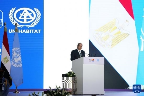 11月4日,在埃及首都開羅,埃及總統(tǒng)塞西在第12屆世界城市論壇開幕式上致辭。新華社記者 王東震 攝