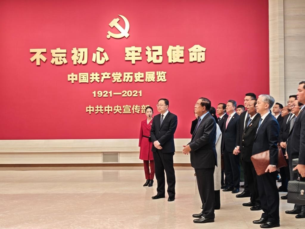 “了解研究歷史,對推進實現(xiàn)國家富強、開創(chuàng)人類美好未來具有重要意義?!?2月4日上午,正在對中國進行正式友好訪問的柬埔寨人民黨主席、參議院主席洪森專程來到中國共產(chǎn)黨歷史展覽館參觀。一張張歷史圖片、一件件文獻實物、一個個逼真場景……展廳內(nèi),洪森不時駐足,由衷贊嘆中國共產(chǎn)黨領導中國取得的發(fā)展成就。