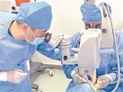 日前,埃塞俄比亞“光明行”項目在蒂魯內(nèi)什—北京醫(yī)院順利實施。在為期20余天的義診活動中,來自天津市眼科醫(yī)院的“光明行”專家團隊和第二十五批中國援埃塞醫(yī)療隊憑借精湛醫(yī)術(shù)和豐富經(jīng)驗,確保每一例白內(nèi)障手術(shù)都取得圓滿成功。專家團隊還向當?shù)孛癖娖占鞍變?nèi)障防治知識,與當?shù)蒯t(yī)院開展眼科診療技術(shù)交流,分享先進技術(shù)和管理經(jīng)驗,為提升埃塞俄比亞眼科醫(yī)療水平貢獻力量。埃塞俄比亞眼科醫(yī)生在中國專家的指導下參與手術(shù),收獲經(jīng)驗。當?shù)匮劭漆t(yī)生伊利卡爾·貝哈努表示:“我們從中國醫(yī)生那里學到了高水平的專業(yè)技術(shù)?!?/p>