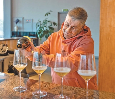 “除了葡萄酒外,我們還不斷拓展釀酒種類。這兩款酒是由我們員工自家種植的大米和蘋果釀制的?!奔贸鰞善烤谱院赖亟榻B道,“它們?cè)谑袌錾虾苁軞g迎,農(nóng)產(chǎn)品附加值提高了,員工們的收入更多了,真正實(shí)現(xiàn)了產(chǎn)業(yè)與生活的緊密結(jié)合?!?/p>
