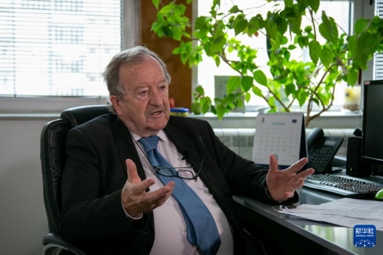 2月27日,塞爾維亞貝塔通訊社社長拉多米爾·迪克利奇在首都貝爾格萊德接受新華社記者專訪。新華社記者 石中玉 攝