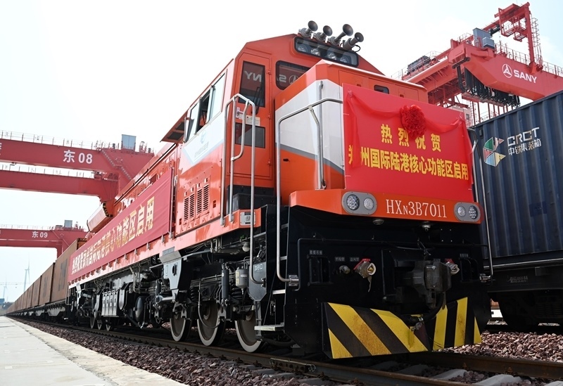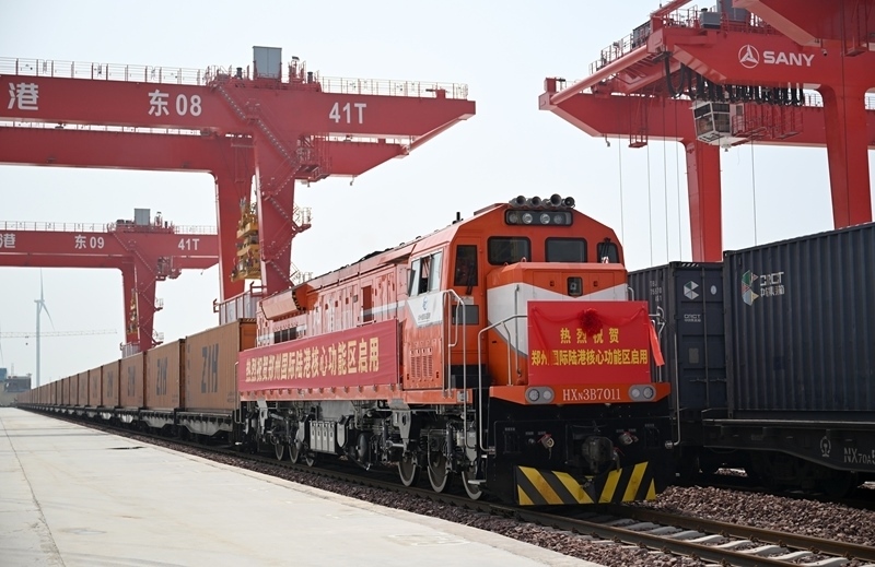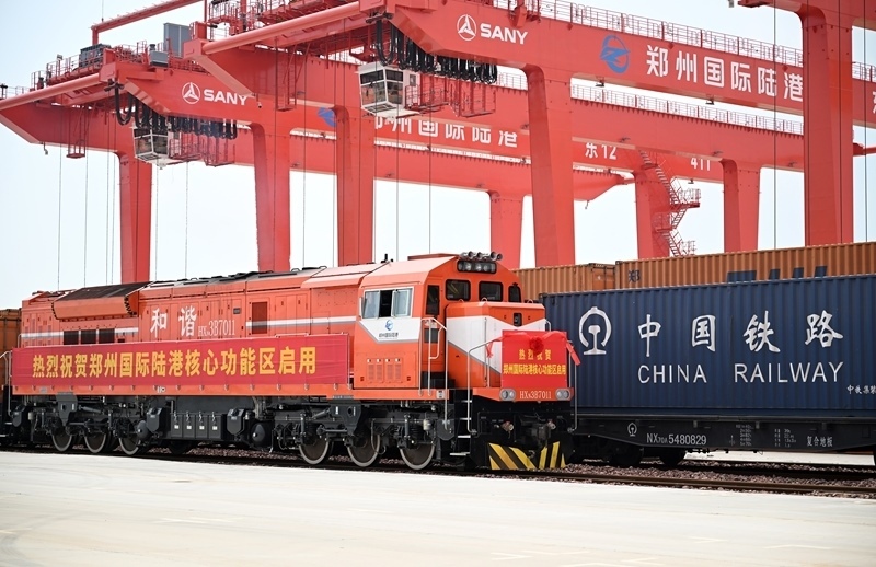 6月28日,一班列車(chē)在鄭州國(guó)際陸港核心功能區(qū)啟動(dòng)運(yùn)行。