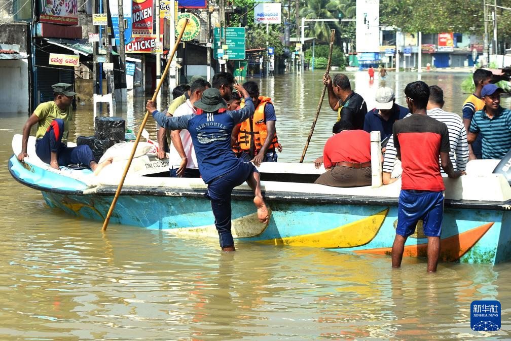12月1日,在斯里蘭卡首都科倫坡郊區(qū),救援人員將受洪澇影響的民眾轉(zhuǎn)移至安全地點(diǎn)。新華社發(fā)(加揚(yáng)·薩米拉攝)