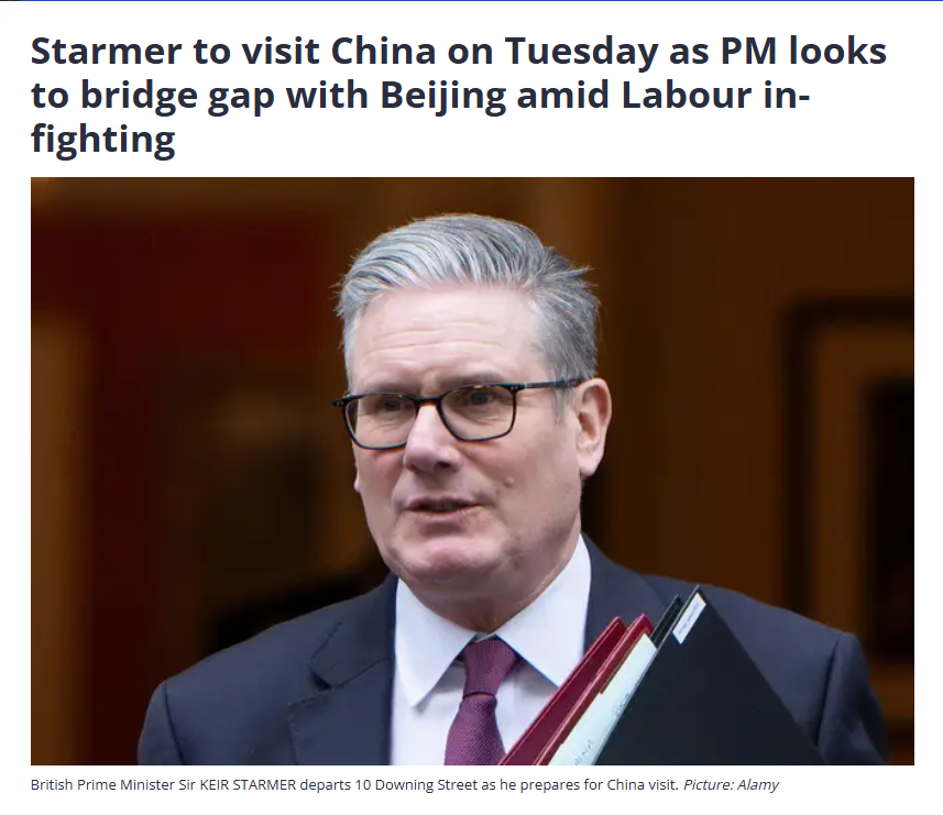 應(yīng)國務(wù)院總理李強邀請,英國首相斯塔默將于1月28日至31日對中國進行正式訪問。歐洲媒體對此給予強烈關(guān)注。多家歐洲媒體報道稱,這是2018年以來,英國首相首次對中國的訪問。