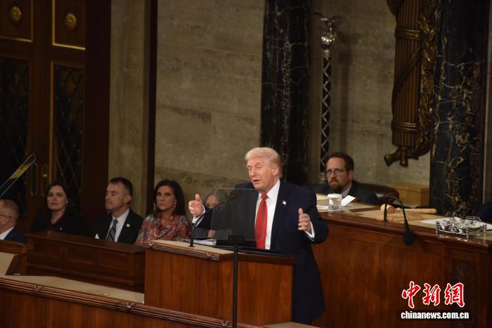 當地時間2月24日晚,美國總統(tǒng)特朗普在國會參眾兩院聯席會議上發(fā)表國情咨文講話,聚焦經濟、移民等議題。這是特朗普在本總統(tǒng)任期內首次發(fā)表國情咨文。 記者 沙晗汀 攝