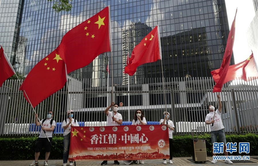 6月4日,在香港金鐘,香港市民慶祝香港特區(qū)立法會三讀通過《國歌條例草案》。當(dāng)日下午,香港特區(qū)立法會三讀通過《國歌條例草案》,《國歌條例》將于6月12日正式刊憲實施。新華社記者王申攝