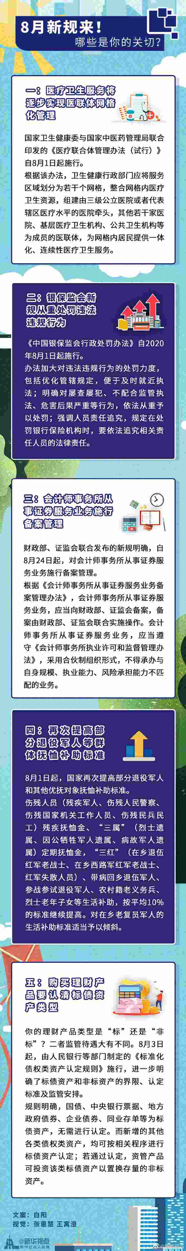 居民看病將逐步實(shí)現(xiàn)醫(yī)聯(lián)體網(wǎng)格化服務(wù)、銀保監(jiān)會新規(guī)進(jìn)一步提升金融違法違規(guī)成本、部分退役軍人和其他優(yōu)撫對象撫恤補(bǔ)助標(biāo)準(zhǔn)再次提高……這個(gè)8月,又有一批新規(guī)開始施行,影響你我的生活。