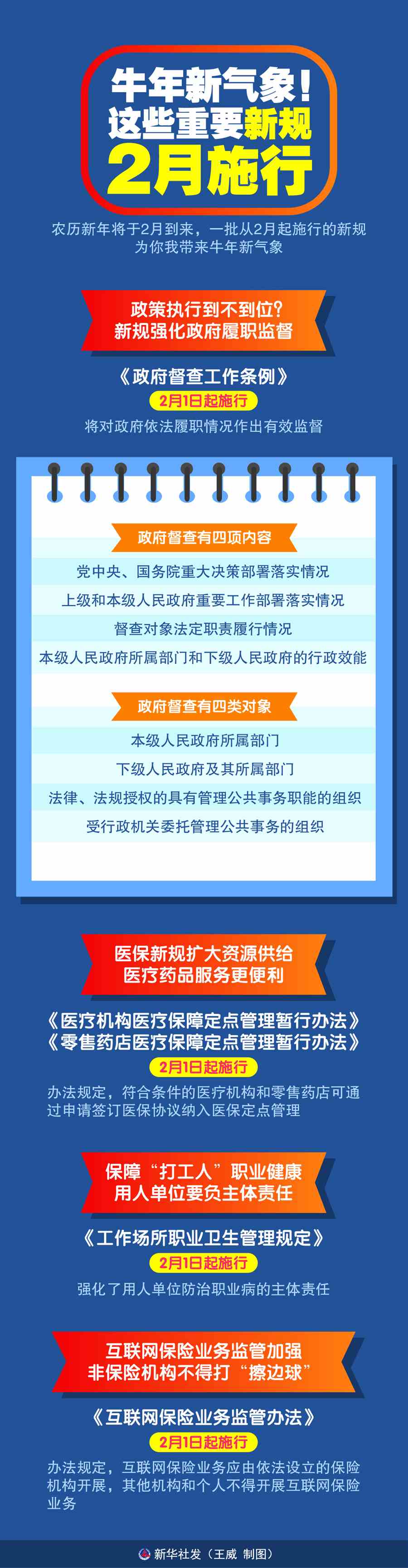農(nóng)歷新年將于2月到來(lái),一批從2月起施行的新規(guī)為你我?guī)?lái)牛年新氣象。政府履職有了督查“利器”,醫(yī)保新辦法帶來(lái)更便利的醫(yī)療藥品服務(wù)……點(diǎn)點(diǎn)滴滴的法治進(jìn)步,鑄就更美好的社會(huì)生活。