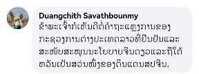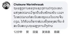老撾黨中央機關(guān)報前總編輯、社長端吉·薩瓦本彌(Duangchith Savathbounmy)留言:“認同我的祖國對臺灣問題的表態(tài),支持一個中國原則,臺灣是中國不可分割的一部分?!?/p>