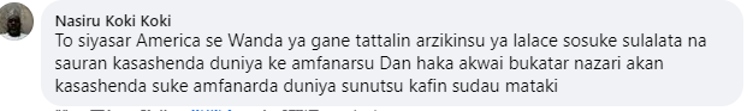 尼日利亞網(wǎng)友納斯魯(Nasiru Koki Koki)留言:“正是美國自身經(jīng)濟的衰退,使得它如此迫切地想要阻止其他國家的經(jīng)濟發(fā)展,面對美國的挑釁,中國應(yīng)采取審慎的態(tài)度。”