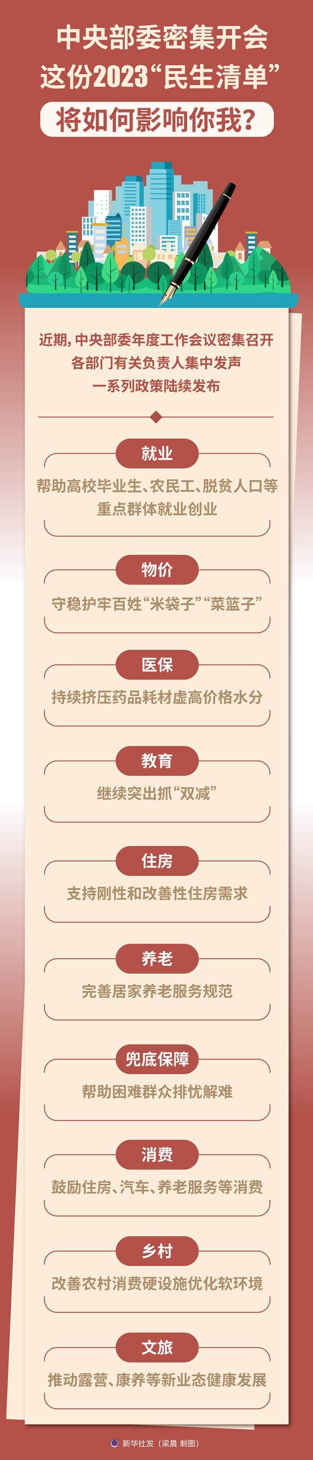 近期,中央部委年度工作會議密集召開,各部門有關(guān)負責人集中發(fā)聲,一系列政策陸續(xù)發(fā)布?!靶氯A視點”記者梳理了多個領(lǐng)域2023年聚焦民生關(guān)切的重要舉措。