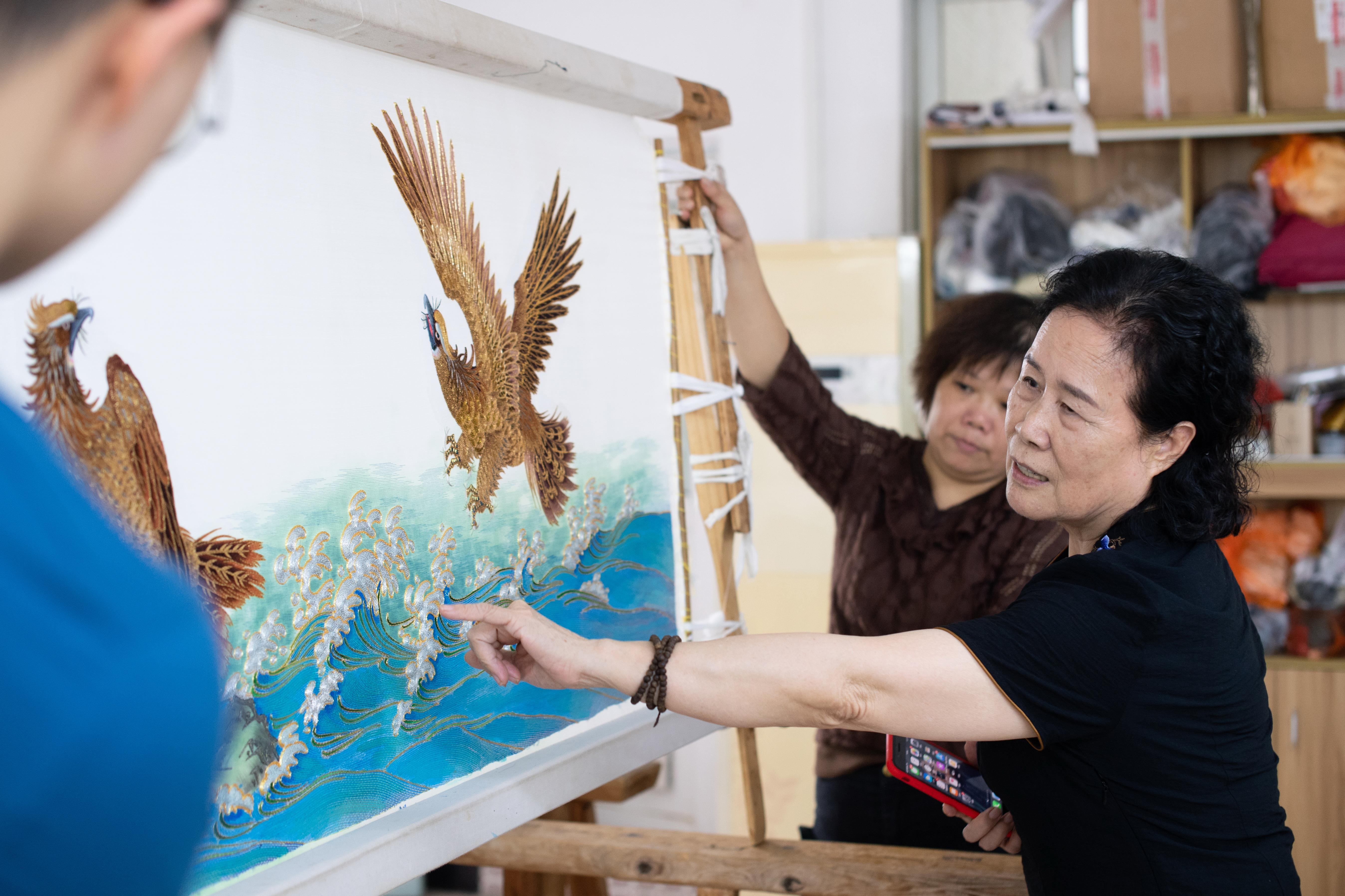 “2015年,我參加了聯(lián)合國舉辦的一個展覽,被授予‘文化大使’的稱號,為潮繡爭了光?!被貞浲簦祷莘加行┘?,“沒有國家的強大,不可能有這樣的舞臺展示我們的民間技藝,衷心感謝國家對我們這些非遺傳承人的重視?!?/p>