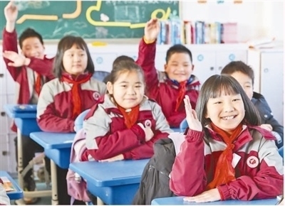 安徽省合肥市蜀山區(qū)北苑村社區(qū)琥珀小學(xué)(東區(qū)),孩子們在校園里迎接新學(xué)期的到來。陳三虎攝(影像中國)