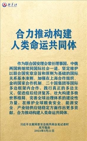3月20日,習(xí)近平主席在《俄羅斯報(bào)》和俄新社網(wǎng)站上發(fā)表的署名文章中,回顧了構(gòu)建人類(lèi)命運(yùn)共同體理念的發(fā)展歷程。
