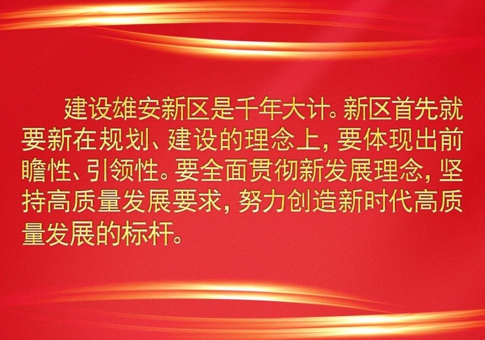在以習(xí)近平同志為核心的黨中央領(lǐng)導(dǎo)下,堅(jiān)持大歷史觀,保持歷史耐心,一茬接著一茬干,一年接著一年干,確保一張藍(lán)圖干到底,努力創(chuàng)造“雄安質(zhì)量”,雄安新區(qū)正著力打造高質(zhì)量發(fā)展的全國樣板。