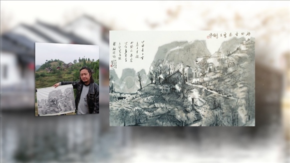 雖已獲得多個(gè)國(guó)內(nèi)大獎(jiǎng)的認(rèn)可,何加林對(duì)山水畫(huà)造詣的追求并未止步。2011年,五十歲的何加林離開(kāi)杭州北上,從中國(guó)美術(shù)學(xué)院來(lái)到中國(guó)國(guó)家畫(huà)院,并開(kāi)始游歷祖國(guó)大江南北寫(xiě)生采風(fēng)。他用畫(huà)筆勾勒散布在高山、深林、幽谷中的古老村落,用紙墨譜寫(xiě)中國(guó)古老又獨(dú)特的鄉(xiāng)愁、鄉(xiāng)韻?!按迓湮拿饔兄袊?guó)人和大自然共生這樣一種理念融合在里面?!焙渭恿终f(shuō)道。隨后,《石梁幽谷圖》《古寨清嵐》《雨中壇村》《侗寨花橋》等多幅技法獨(dú)特、又充滿人文氣息的優(yōu)秀山水畫(huà)代表作品相繼問(wèn)世。