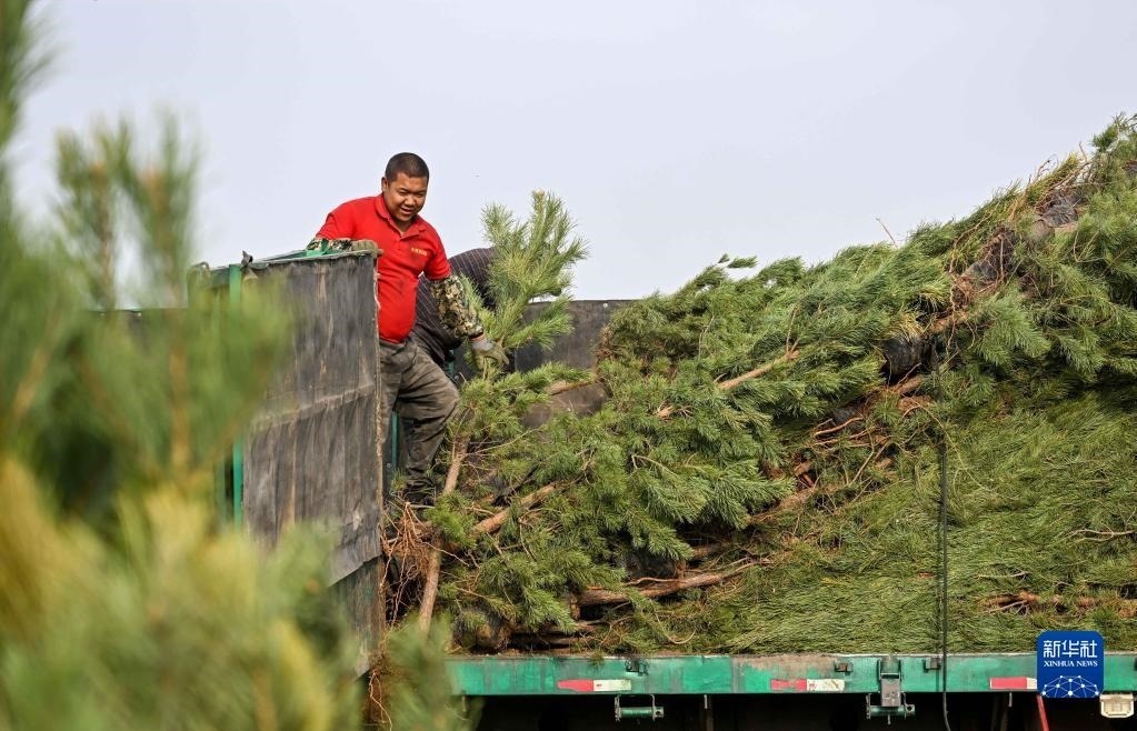 4月15日,在內(nèi)蒙古通遼市科爾沁左翼后旗,治沙工人在運送樹苗。