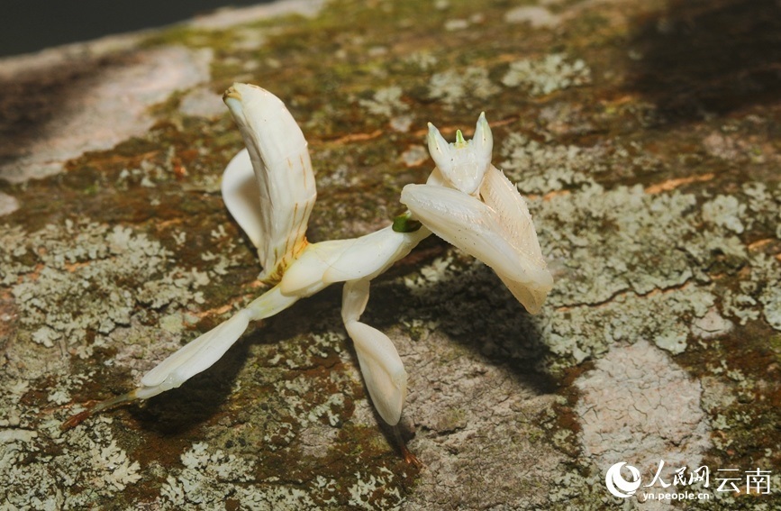寧洱縣同心鎮(zhèn)林業(yè)和草原服務(wù)中心主任楊夢醒介紹,經(jīng)鑒定,這只白色的蟲子是昆蟲綱花螳科的一種動物,名為蘭花螳螂,是螳螂目中最為漂亮的一種,比較稀有。“我們通過查閱資料發(fā)現(xiàn),蘭花螳螂在寧洱縣并無記錄,這次是首次發(fā)現(xiàn)。”