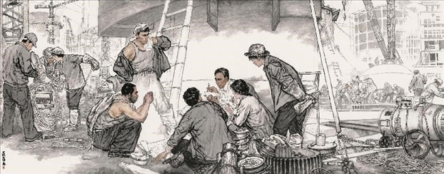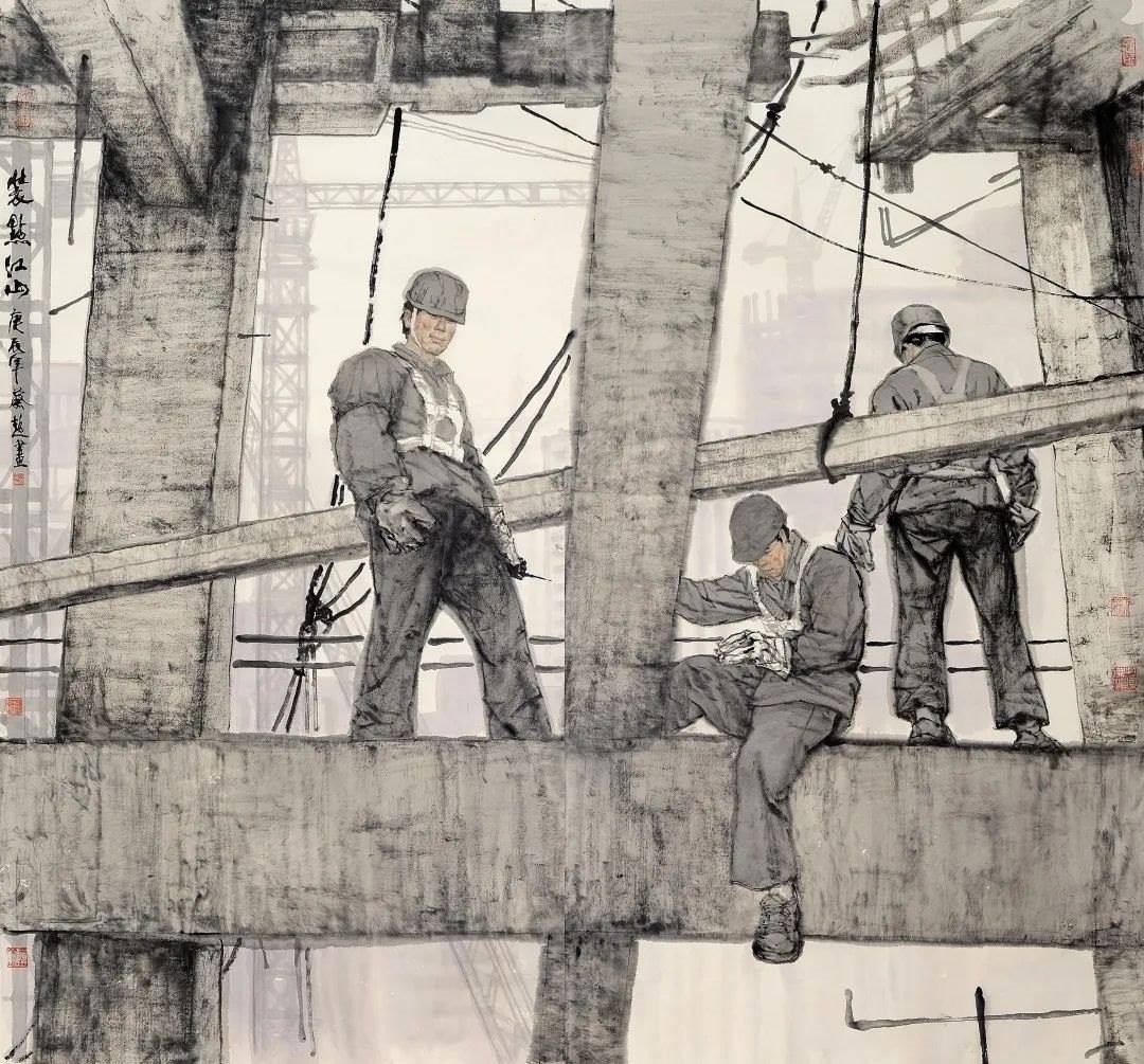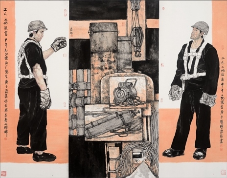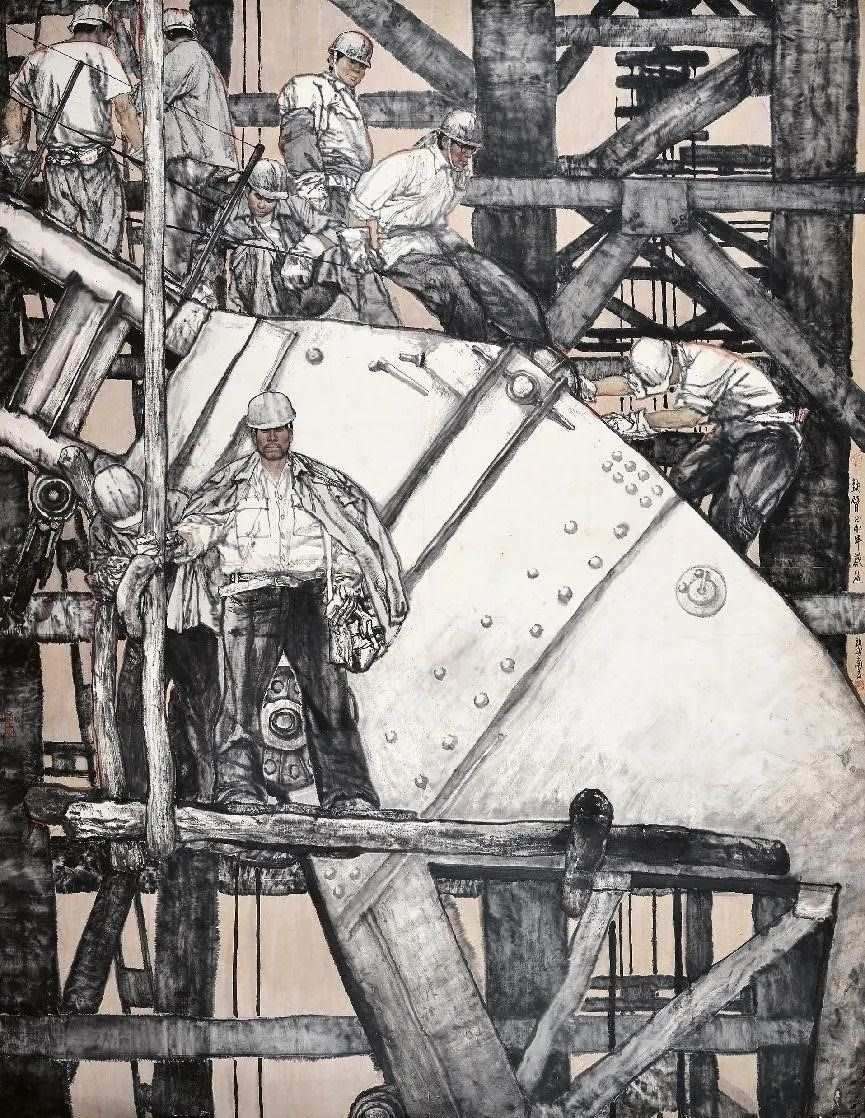 對傳統(tǒng)現(xiàn)實主義的繼承和拓展。作為一位具備卓越造型能力的人物畫家,蔡超始終堅持深入現(xiàn)實生活,他以敏銳的觀察力和理解力,以豐富的人生閱歷不斷從生活中提煉創(chuàng)作母題,發(fā)掘常人所不易察覺的藝術(shù)趣味。因此,蔡超筆下的人物總是葆有鮮活的生命和氣息,他們不是空洞的“人民”,而是牢固與地氣相接,與時代共呼吸的真正的“人民”,他創(chuàng)造了嶄新的屬于贛鄱大地的人民形象,這是蔡超對于江西現(xiàn)實主義繪畫創(chuàng)作最重要的貢獻(xiàn)。同時,蔡超不僅繼承了徐悲鴻、蔣兆和以來中國人物畫創(chuàng)作的優(yōu)良傳統(tǒng),更以“筆墨當(dāng)隨時代”的勇氣和魄力,在工業(yè)題材領(lǐng)域樹立了令人耳目一新的繪畫范式——這是一個前無古人的偉大突破。