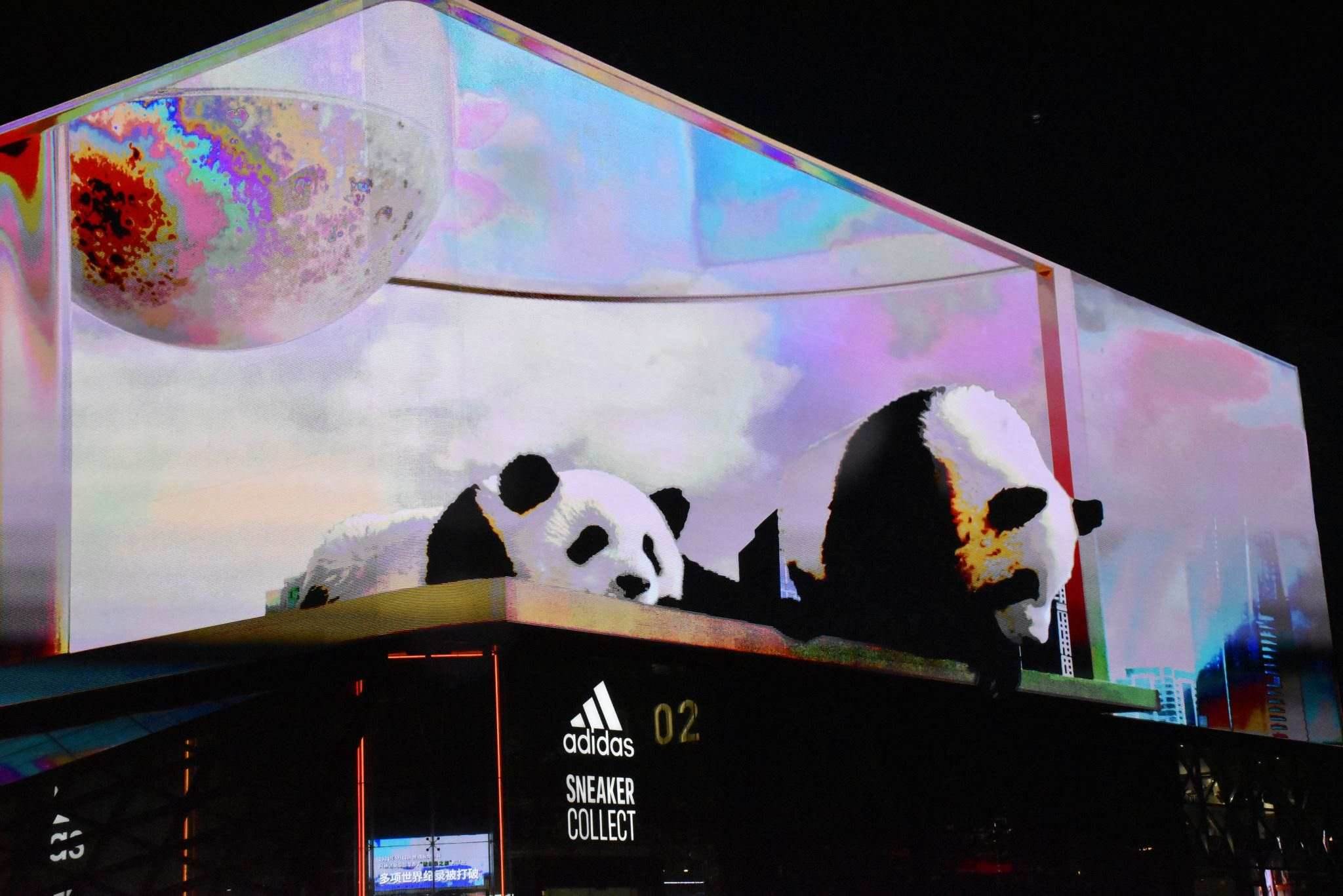 2023年4月24日,成都,太古里步行街的裸眼3D屏上,大熊貓萌態(tài)十足。視覺(jué)中國(guó)