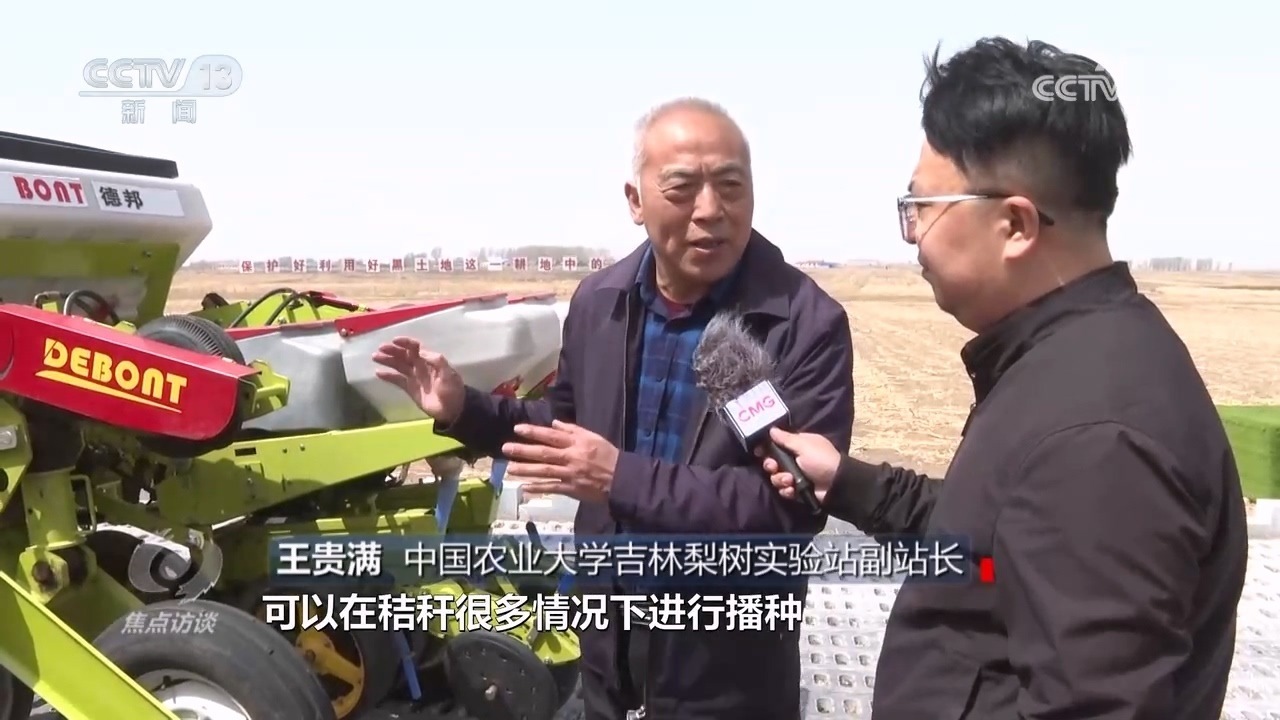中國農(nóng)業(yè)大學(xué)吉林梨樹實(shí)驗(yàn)站副站長王貴滿:“免耕播種可以在秸稈很多情況下進(jìn)行播種,土地不均勻的條件下,用這個(gè)機(jī)器也能實(shí)現(xiàn)均勻播種,這是最大的變化,更加標(biāo)準(zhǔn)化了,更加智能化了。”