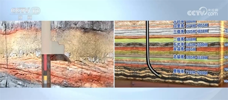 為了讓大家更好地理解鉆井工作,我們借助虛擬技術(shù)制作了一個(gè)地層結(jié)構(gòu)圖。開鉆施工后,將從新近系開始,陸續(xù)穿越古近系、白堊系、三疊系等,最后到達(dá)奧陶系,總共要經(jīng)過9個(gè)地層,最后來到9472米的油層深處。