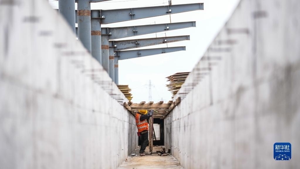 5月1日,中鐵建工集團(tuán)工人在貴州貴安新區(qū)貴安站擴(kuò)建項目工地施工。