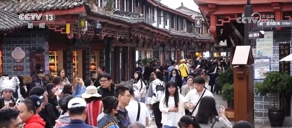 總臺(tái)記者 郭琳潔:“五一”假期第三天,臨近中午,麗江古城已經(jīng)是人流如織。游客有的是一家老小有說有笑,有的是三五好友打卡拍照。陽光明媚的上午,漫步在古香古色的四方街,探訪小橋流水人家,非常愜意悠閑。商家們?yōu)榱擞佑慰鸵沧鲎懔藴?zhǔn)備,各種特色工藝品、熱氣騰騰的美食隨處可見,還有民族特色的歌舞表演,讓大家感受納西族傳統(tǒng)文化的魅力。